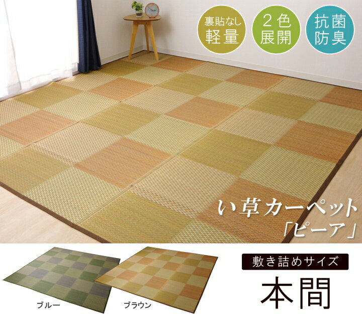 い草 ラグ 4畳半 おしゃれ ブロック柄格子デザインい草ラグ[本間4.5畳 (約286×286cm)]ブルー・ブラウン上敷 カーペット ラグ 天然素材 抗菌 防臭 畳 タタミ 空気清浄 湿度調整【4323714】ピーア