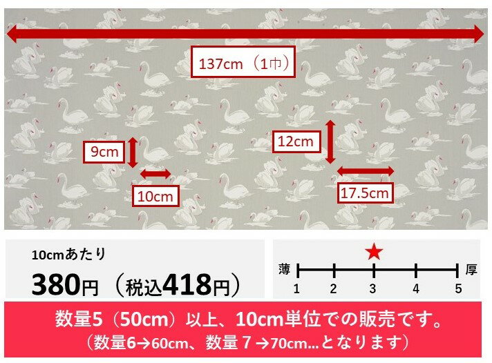 イギリス スワン柄商品名:SWANS/pebble ブランド名:CLARKE&CLARKE(クラーク&クラーク)*50cm以上10cm単位輸入生地 鳥柄 白鳥柄 カルトナージュ ハンドメイド バッグ 生地 布 綿100%