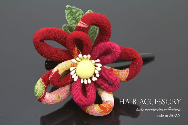 髪飾り 成人式 七五三 赤 レッド 牡丹 花 縮緬 ちりめん 和柄 レトロ 古典 くちばしクリップ 日本製 髪留め 振袖向け 卒業式 袴向け 小紋向け 和装 【あす楽対応】
