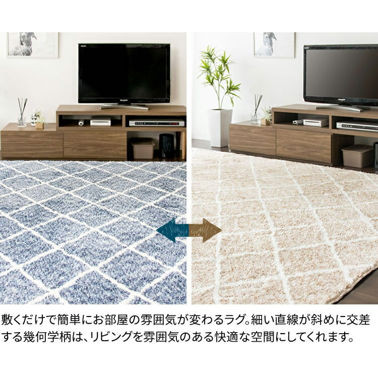 立体感と高級感のあるジャガード織りの幾何学シャギーラグ。